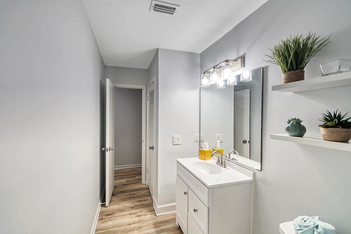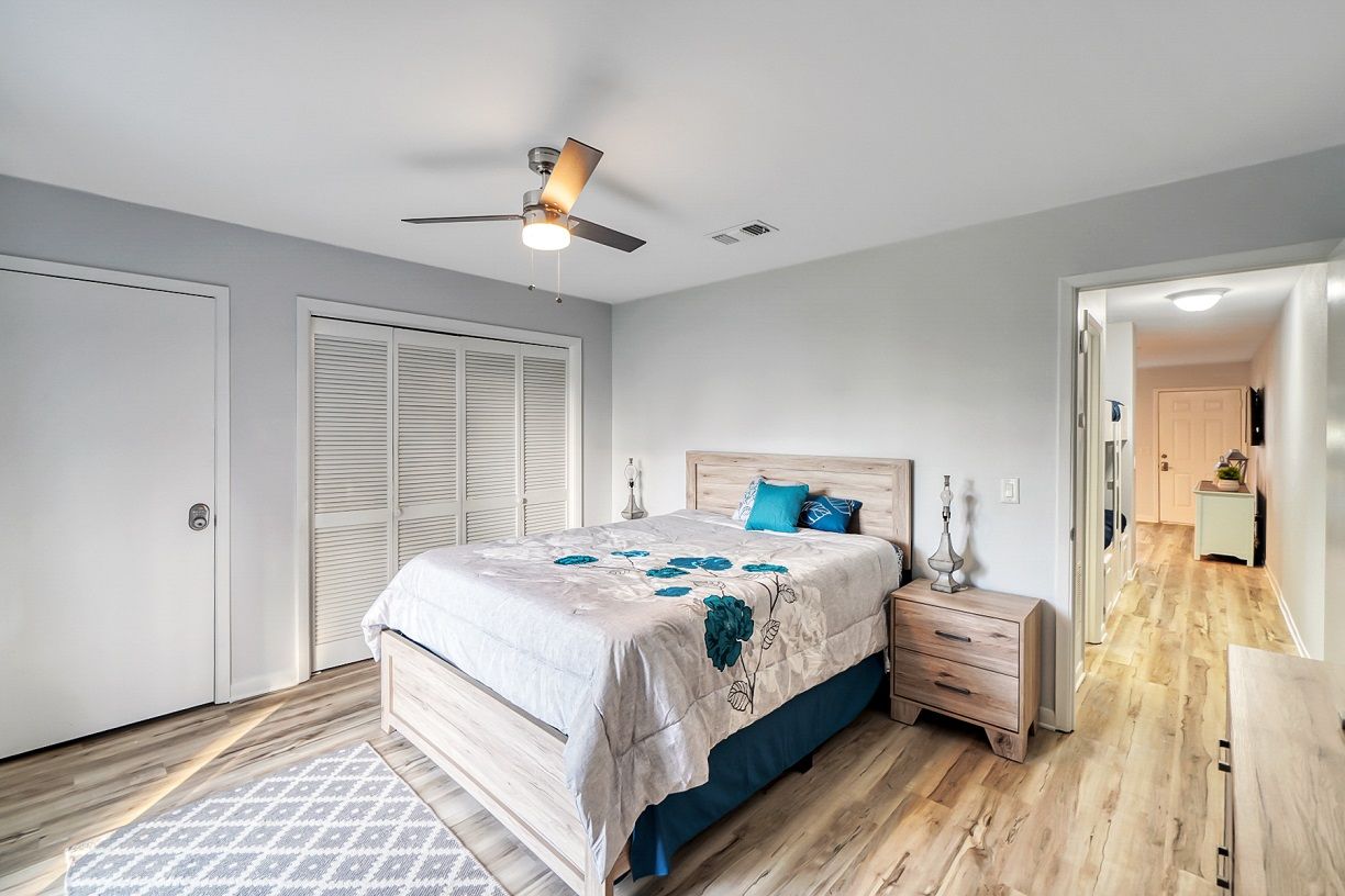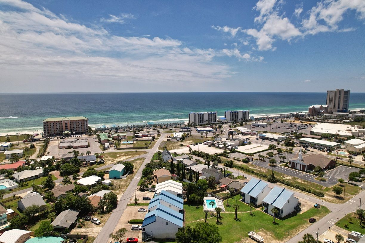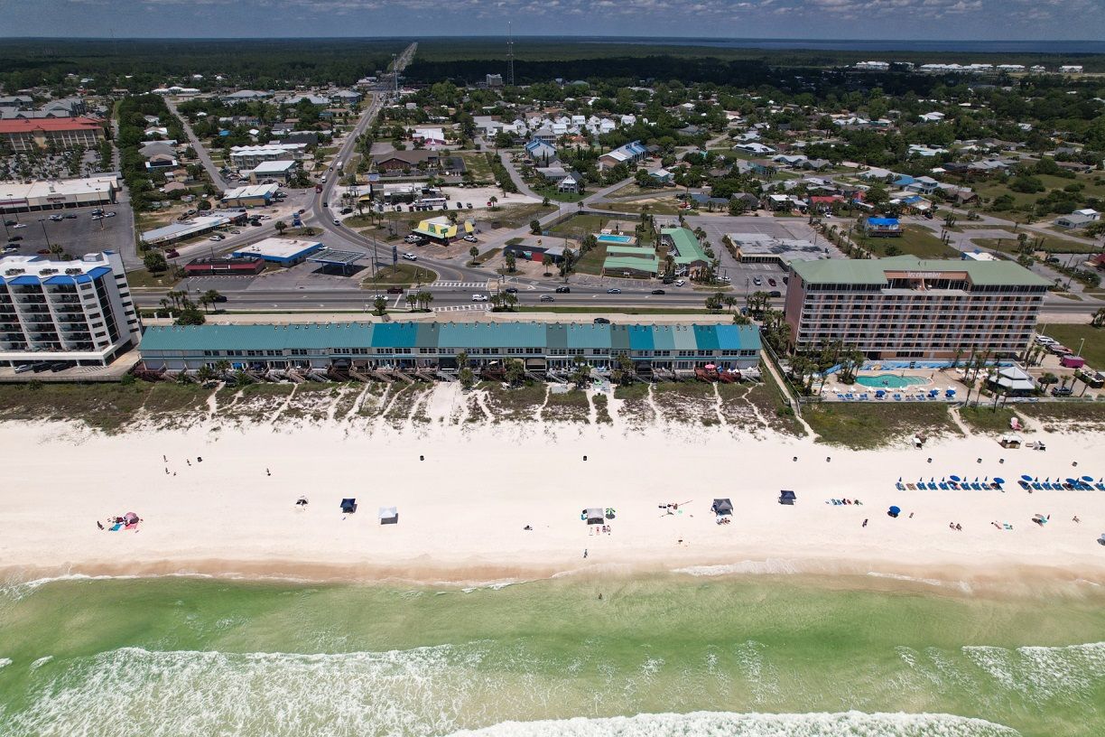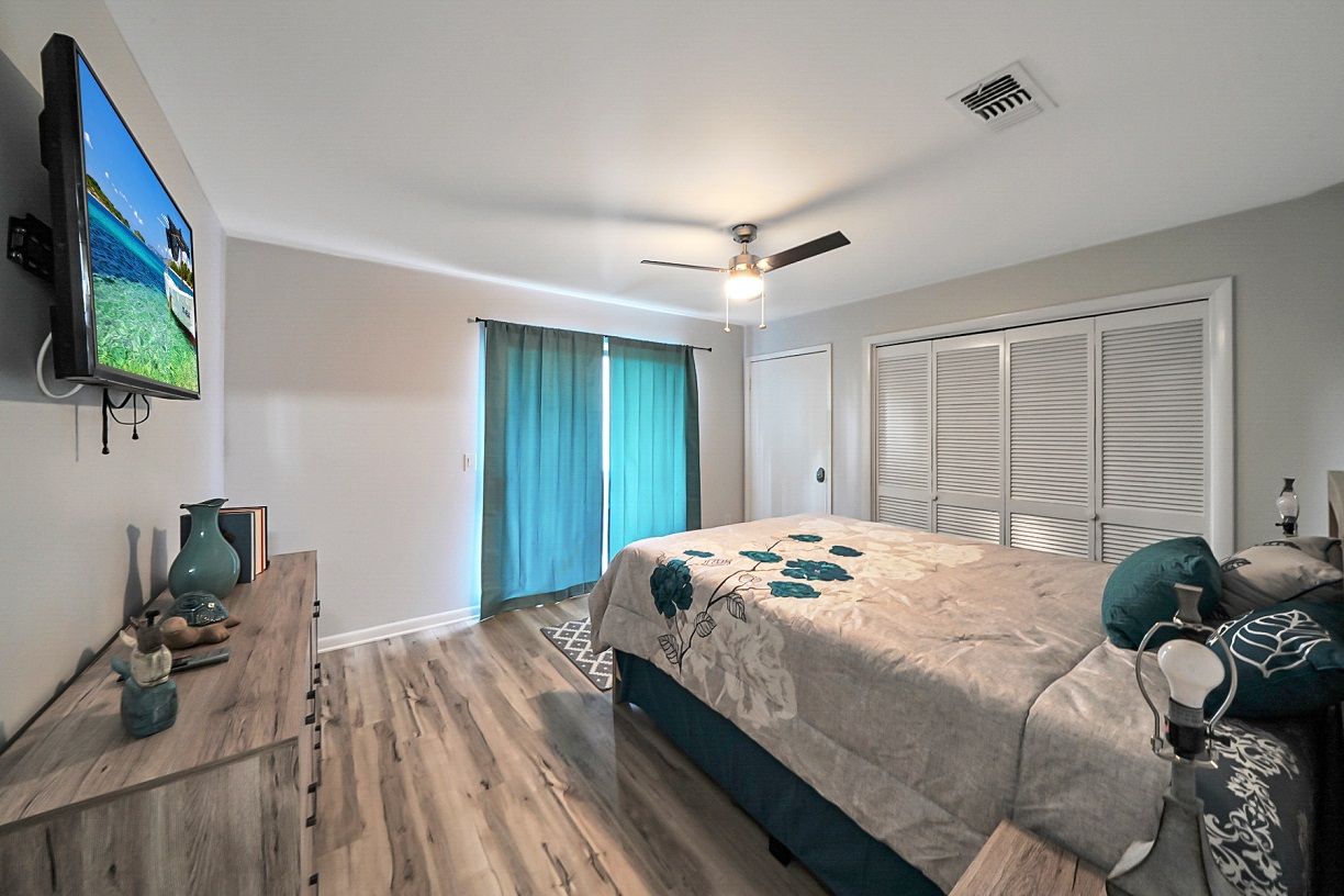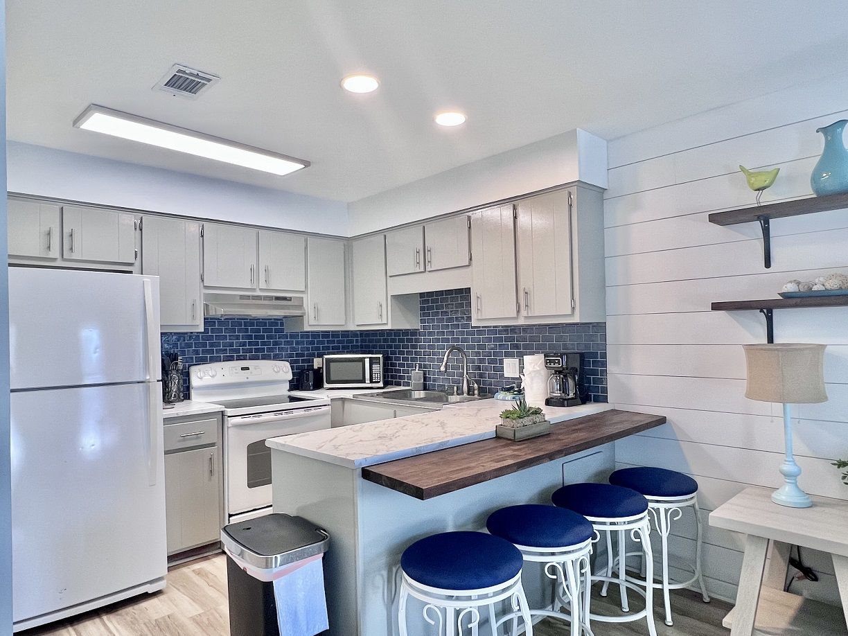 This one bedroom condo easily and comfortably sleeps six while providing plenty of space for total relaxation, coastal vibes, and great community. The bedroom sleeps 2, there are 2 twin bunks in an alcove, and a queen sleeper sofa. There is a large green-space for a fun game of corn hole or to let the kids be kids. All within walking distance. Sunshine Villa is only a mile from Pier Park! You can't go wrong choosing Sunshine Villa for your vacation destination!