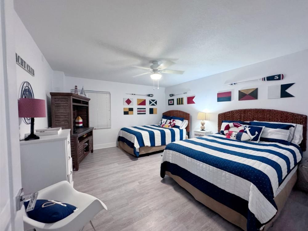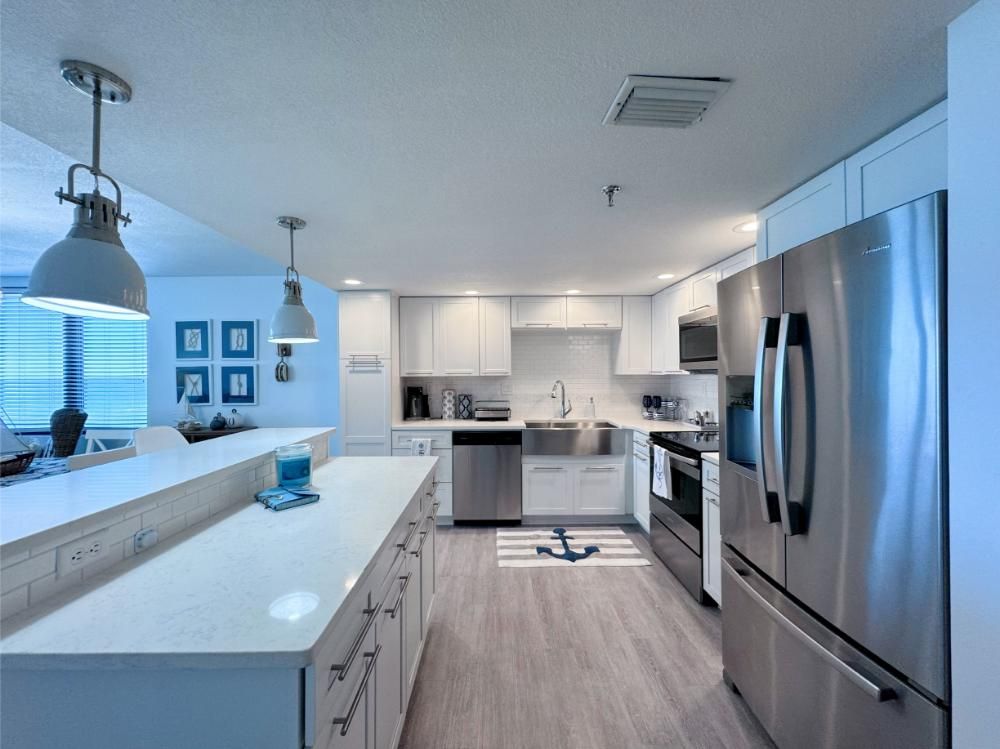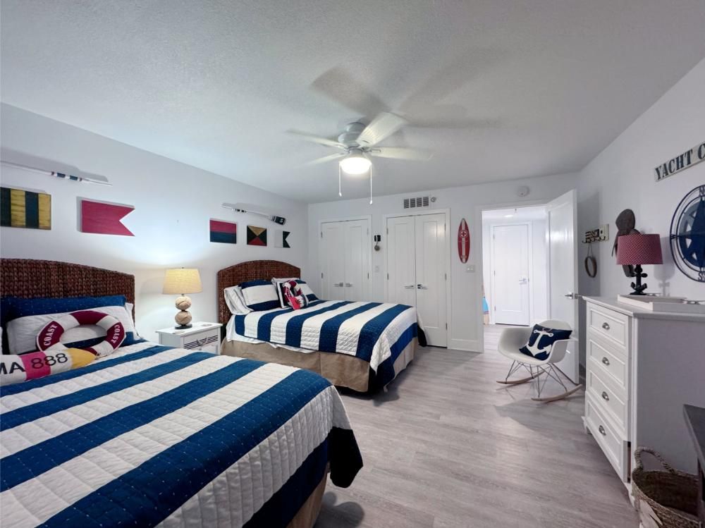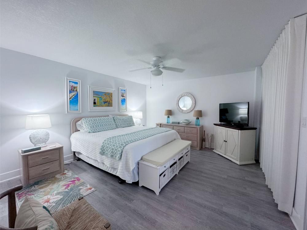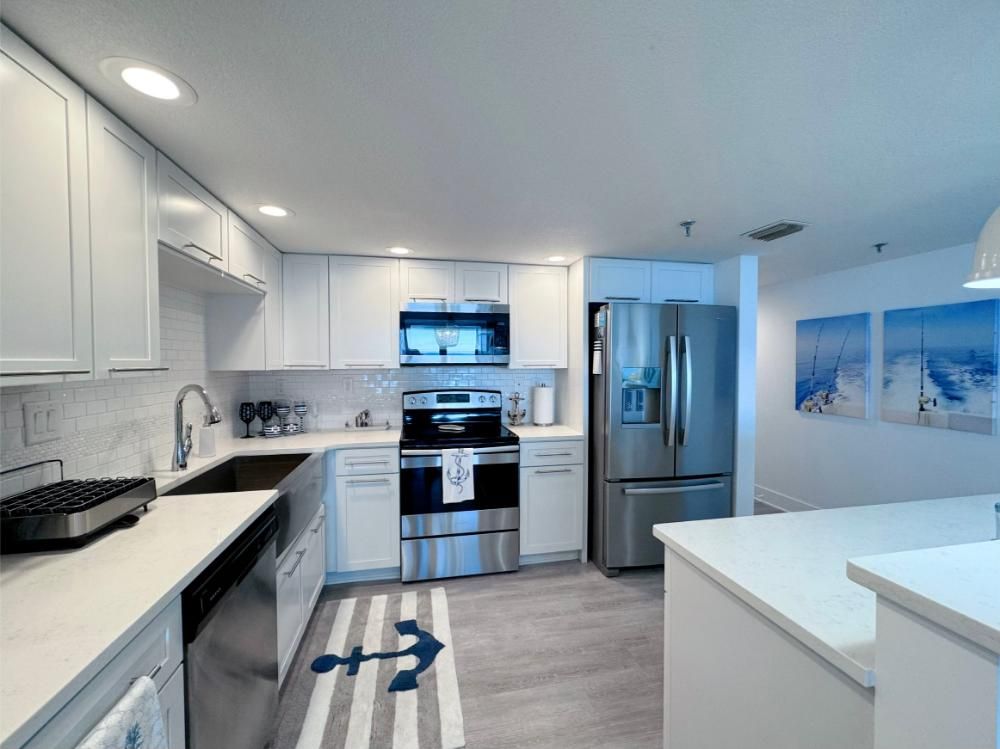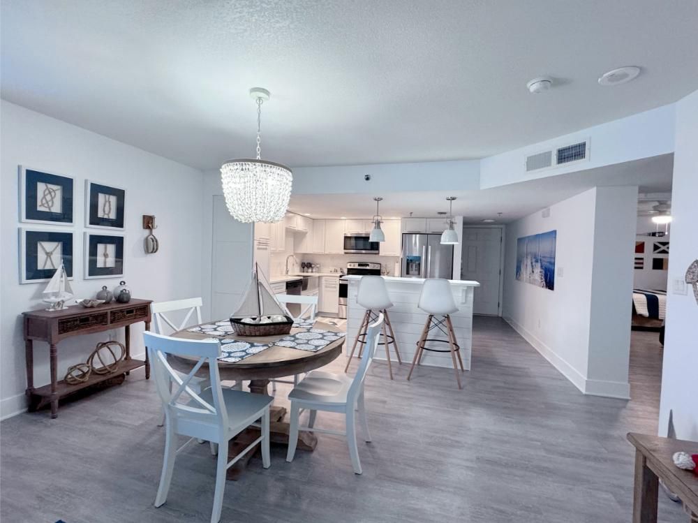 'It's a Shore Thing' that this is one of the most pristine beachfront condos in the area and offers panoramic views of emerald green waters. The defining presence of impossibly soft sugar white sand on Florida's Emerald Coast is a sensory experience we would love to share with you and your family. Our remodeling goal was to provide perfectly balanced style and comfort to this open floor plan and ensure a vacation stay you will not soon forget! Enjoy beach views from the kitchen, dining area, master suite, and living area. Access to the covered balcony is just off the living area and there is also direct access to the balcony from the master suite. Indoors and on the balcony you will find comfortable seating and a stunning view of the pool deck, beach, and the Gulf and the perfect setting to enjoy the spectacular sunset.... Best seat in the house for sun sets! This is truly a condo set above the rest and every inch of the condo has been renovated beautifully. As of today this unit has never been rented and was designed for comfortable living and no expense was spared! Come be one of our first guests at this opulent 2 bed two bath condo featuring a luxurious king bed in the master suite and two queen beds in the second bedroom. There is also a sleeper sofa in the living area, comfortably sleeping 6 guests. Both bathrooms feature beautiful tiled walk in showers we know you will love! The covered balcony is very large and just a great place to enjoy your day with some of the best views in Florida. Come, be our guest.