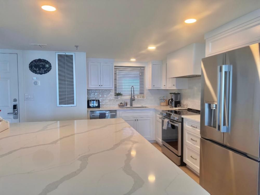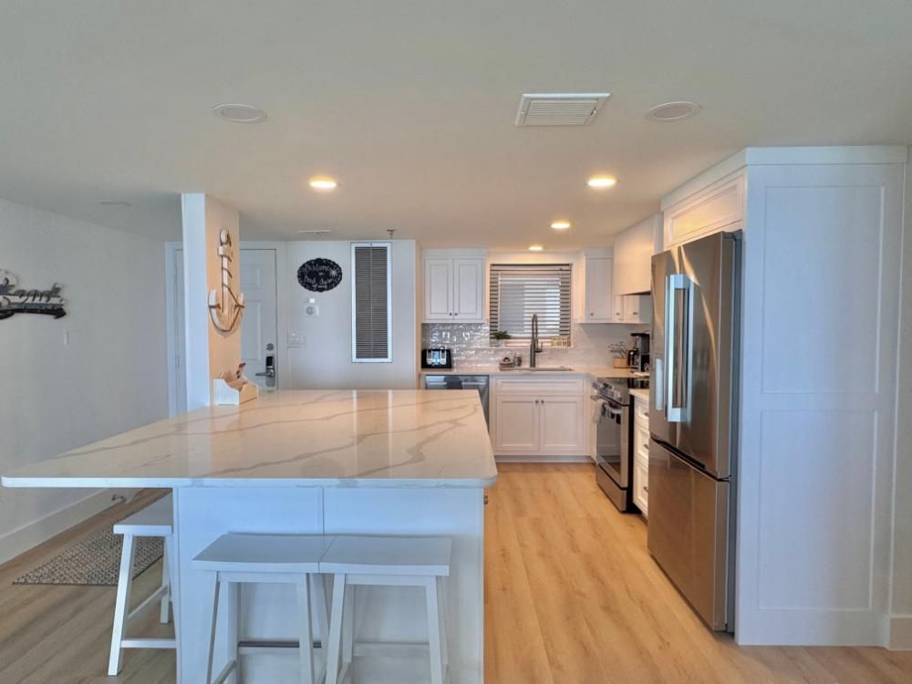 You will appreciate a great view of the ocean from most rooms in the condo with large floor to ceiling glass panels and sliding glass doors. The large balcony provides unobstructed breath taking views up and down the coastline! The master suite has a king size bed with full bath. The second bedroom has two queen size beds with a full bath conveniently located across the hallway. The living room also has a queen sleeper sofa. The kitchen is equipped with stainless steel appliances and new counter tops. This is a perfect setting for a beach getaway where you will create lifetime memories!