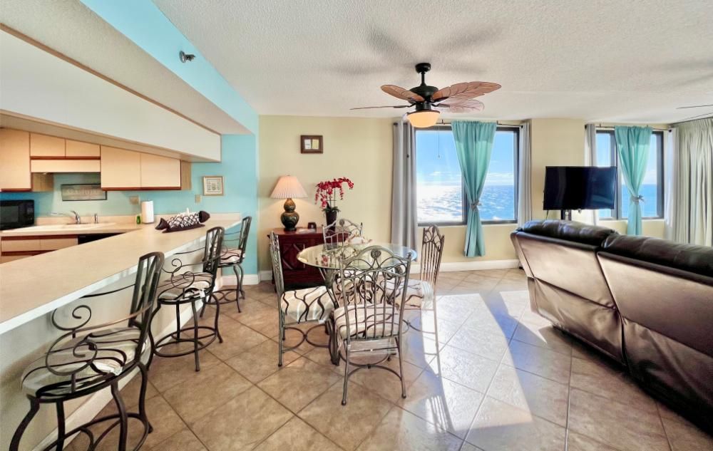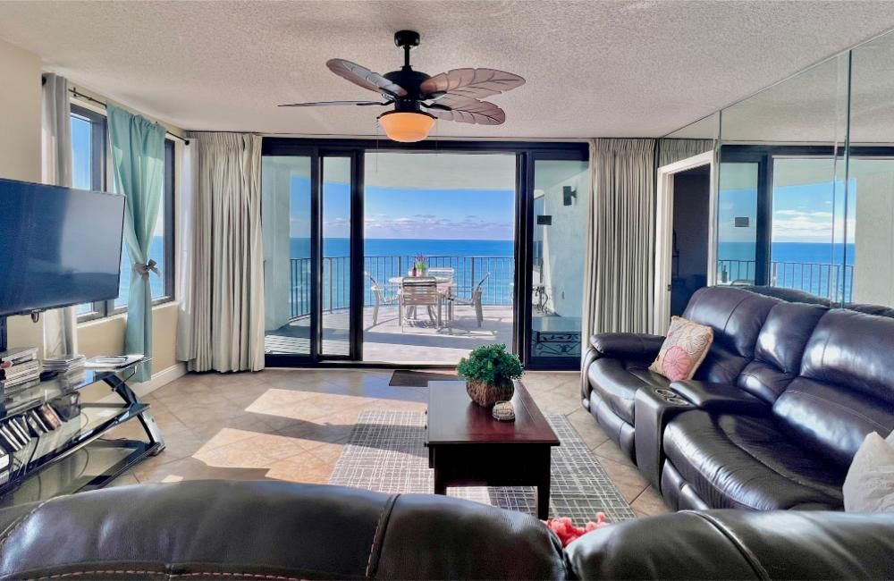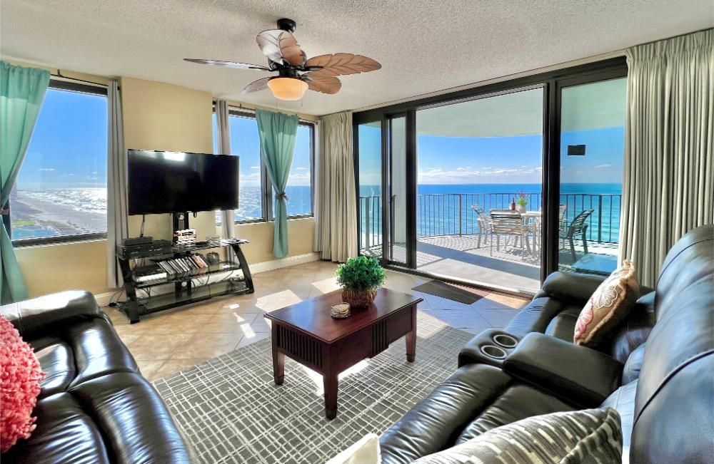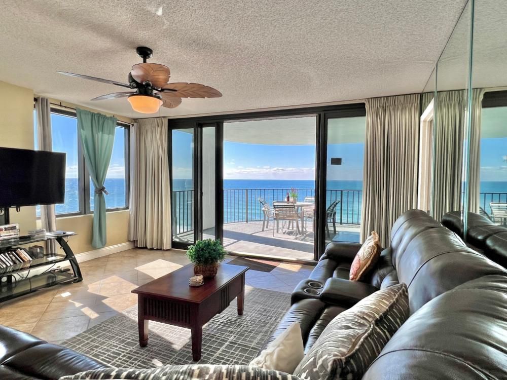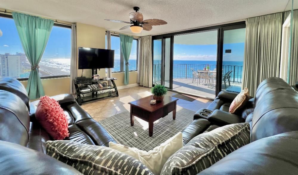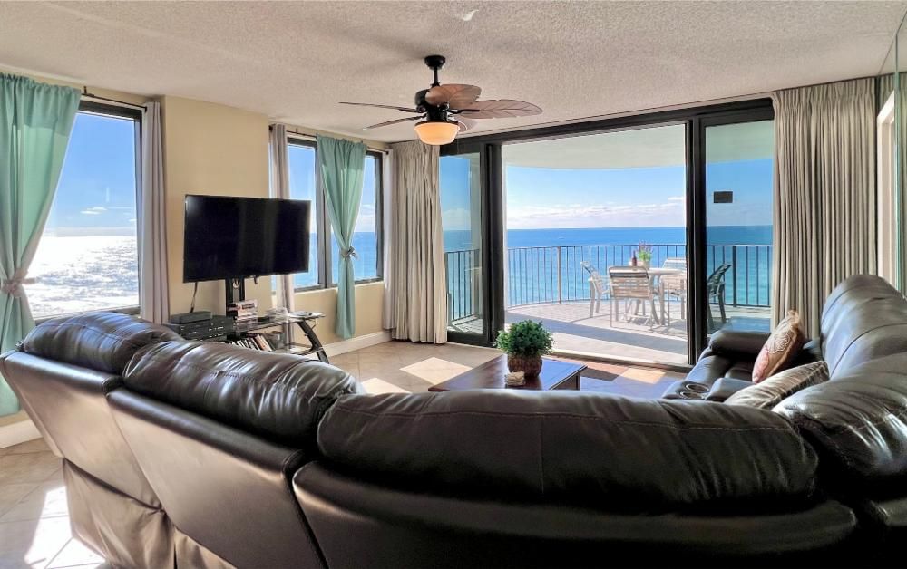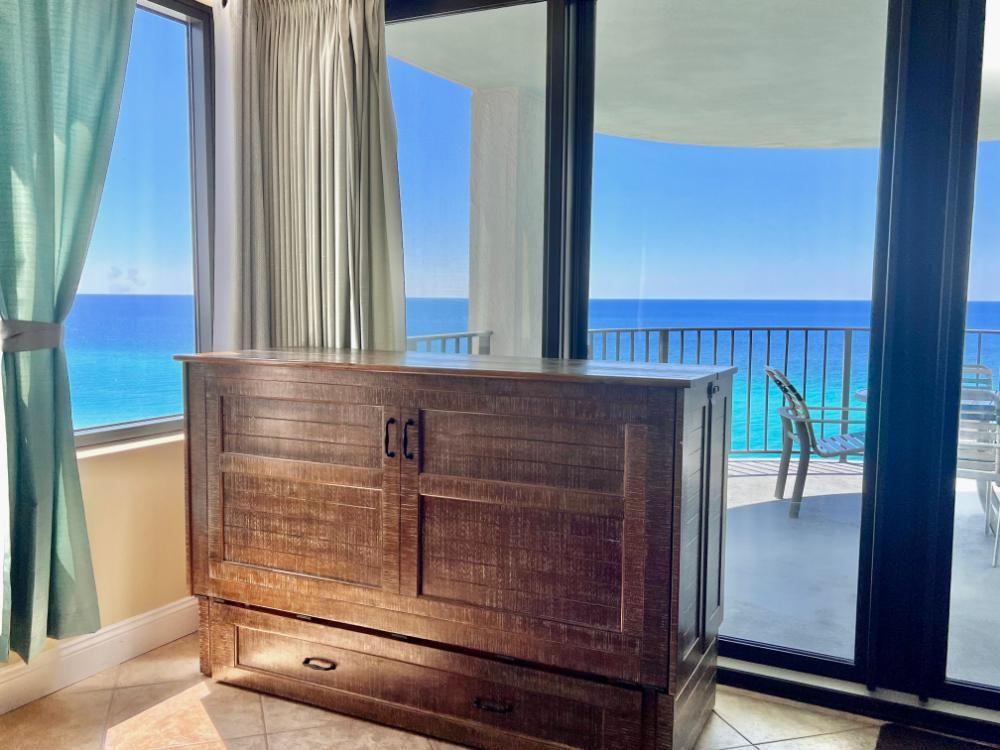 $4.3 Million dollar renovation has been completed at Watercrest Condominiums, a luxurious high-rise. There are 27 miles of beach in this Northwest Florida paradise and Watercrest is one of the most beautiful well maintained condos in the area. We love this East end of the beach because the traffic is so much lighter than in other areas. Also, parking is easy at Watercrest and there are two separate elevators that service the first six floors only so there's no excessive waiting. Please come and enjoy our spacious 1440 sqft 14th floor condo. This is a very large and open floor plan with a spacious kitchen with all appliances and cookware. There are two full baths with tub shower combo. One of our favorite things about this unit is the size and shape of the large partially covered balcony. There is plenty of space to fully serve dinner on the balcony or share breakfast with the family. The living room is furnished with comfortable leather reclining section! Relax and watch TV or just enjoy the amazing view! The master suite is equipped with a king size bed. The second bedroom also has a king size bed with close access to hall bath. Basically 2 master bedrooms. There is also a new queen size Murphy Cabinet Bed which allows for 6 to sleep very comfortably. The views of the Gulf are truly amazing through the large sliding doors and windows! You will also have the opportunity to enjoy the on site amenities such as the Tennis, Pickle Ball courts Bocci Ball, shuffle board, heated pool, hot tub, kiddie pool, and exercise room. ALL FOR YOUR ENJOYMENT!